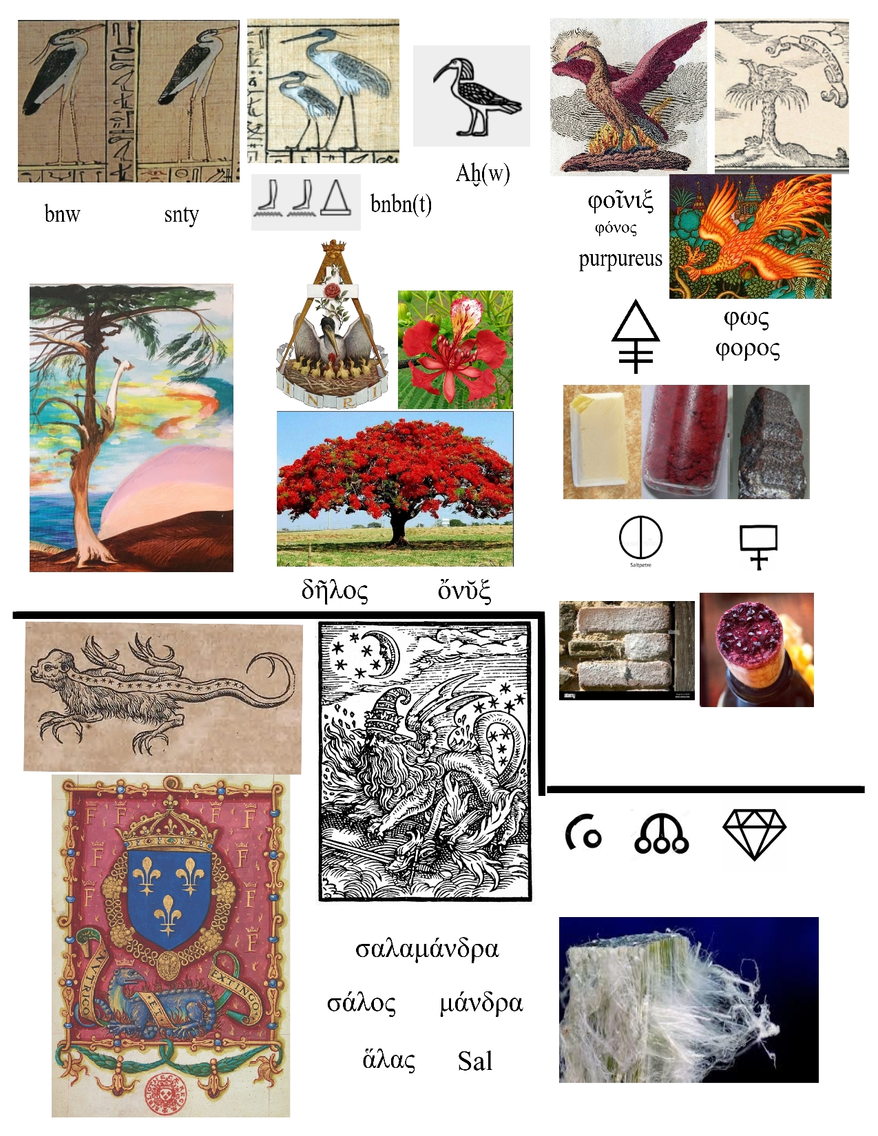 A tiszta képi szemlélet fontosságáról * A Főnix és Szalamandra mitologémái * Az európai népmesekincsben betöltött funkcióik * Figyelemre méltó manifesztációik az újabb kori művészetekben * Etimológiai konsziderációk; megnevezéseik értelmezése a „Hermetikai Kabala” szabályai szerint * Jellegzetes – ikonográfiai és textuális – előfordulásaik alkímiai tárgyú alkotásokban * Az „őselemek” lehetséges hierarchiáiról * A „Tűz” és az „Énség ” * A „Via Sicca” * Az „Énségi Struktúra” és az Aszcenzió